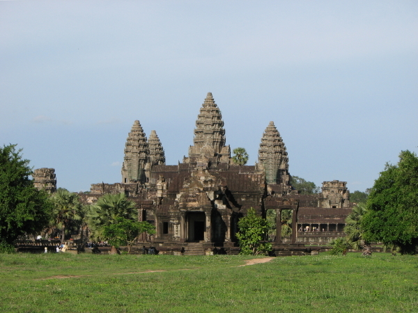 Die Tempelanlage von Angkor Wat ist wohl die Berühmteste, und man muss sagen, nicht zu unrecht. Besonders beeindruckt hat uns Angkor Wat aus der Ferne mit der Kulisse der fünf Türme.