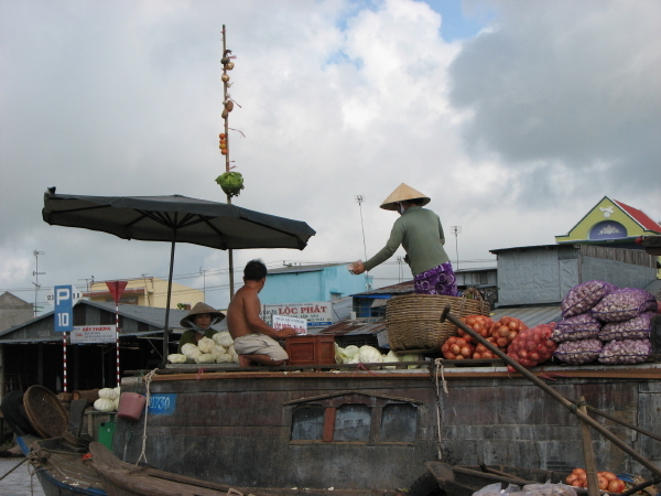 dem schwimmenden Markt der Fahnenmast. Hier wird von jedem Obst bzw. Gemüse,