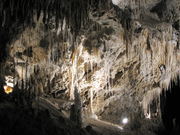 langen Stalagtiten, die von der Decke wachsen, und sogar einem ebenso hohen