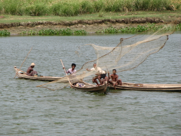 Eine Zeit lang haben wir von der Brücke aus die Fischer beobachtet, konnten aber leider nicht erkennen, was sie dort fangen. Aber da es auf jeder Speisekarte Süßwasser-Fisch gibt, wird das wohl unser Abendessen gewesen sein ;-)