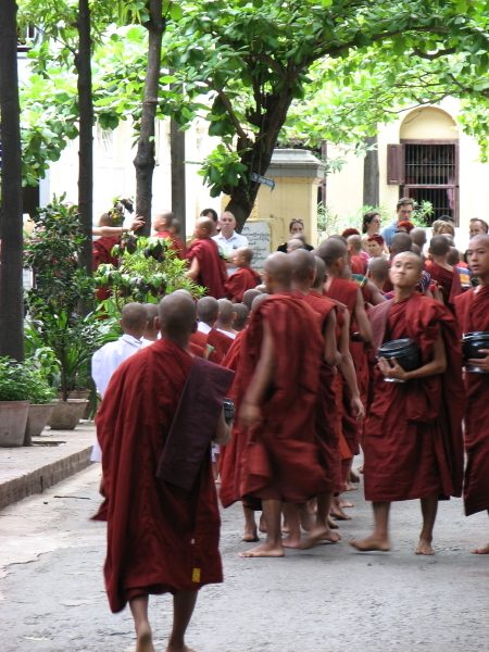 Ebenfalls in Amarapura liegt das Mahagandhayon-Kloster, das mehrere Tausend Mönche beherbergt. Jeden Morgen um 10:30 Uhr versammeln sich die Mönche zum gemeinsamen Mittagessen. Und jeden Morgen um 10:30 Uhr rauschen die Touristen an und schauen den Mönchen beim Essen zu!
