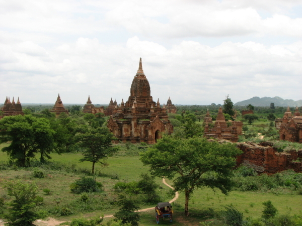 Sowas wie Taxis gibt es in Bagan so gut wie nicht. Schon vom Flughafen zum Hotel mussten wir im Gepäckwagen eines Reiseveranstalters mitfahren, da es am Flughafen kein Taxis gab. Am ersten Tag haben wir dann die Pagoden per Fahrrad erkundet, für den zweiten haben wir uns eine Kutsche mit Fahrer gemietet. Unser Fahrer war ein sehr faszinierender Kerl; er erzählte uns, dass er gerade Philosophie studiert, und auf die Frage Warum, sagte er einfach: "I like thinking". Das ist doch mal was, oder? ;-)