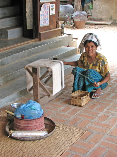 ... wird hier alles noch mit der Hand gemacht. Und wir haben gelernt, dass alleine das Aufspannen des Webrahmens zwei ganze Tage dauert, und eine Person pro Tag ca. 1 m gewebten Stoff produziert. Wenn man dann betrachtet, was so ein Tuch kostet, dann wird einmal mehr klar, das menschliche Arbeitskraft hier nichts kostet, bzw. nicht einberechnet wird.