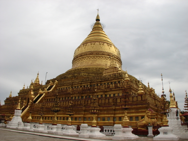 Die wohl berühmteste Pagode Bagans ist die Shwezigon. Sie ist wesentlich prunkvoller als die meisten anderen und zudem in tadellosem Zustand und sticht damit richtig aus dem restlichen Meer an Pagoden heraus. Nichts desto Trotz absolut beeindruckend. Vermutlich ist es auch diese Vielfalt an Farben, Formen, Größen, etc. der Pagoden, die an Bagan so faszinierend ist.