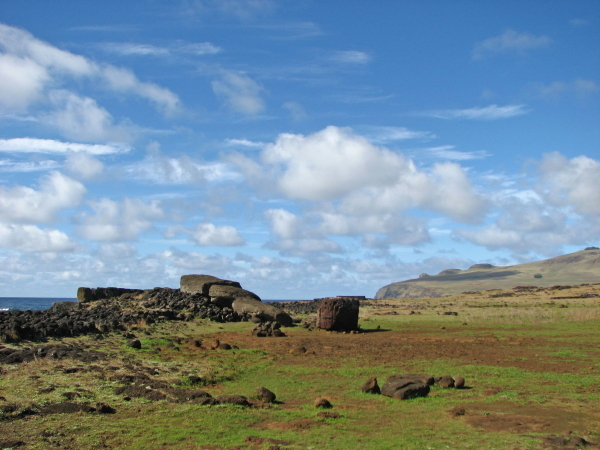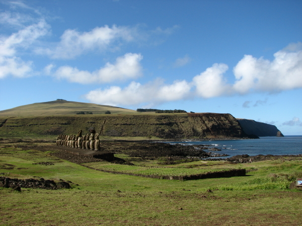 aufrecht stehenden Moais gesehen. Die Athmosphäre dieses Ortes lässt