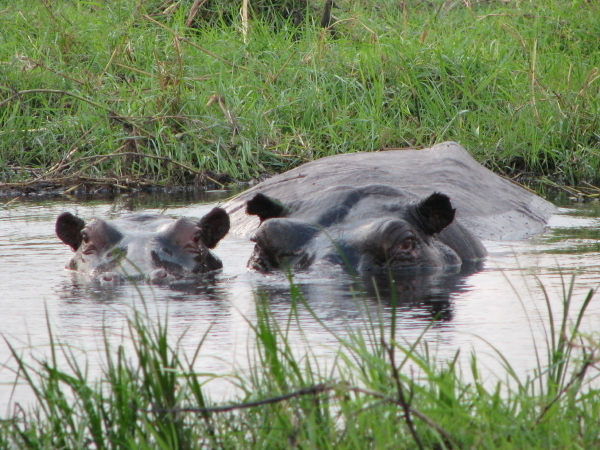 Schön vom Boot aus zu beobachten sind die Nilpferde ... nein, stop ... die Hippos beobachten uns im Boot ;-)